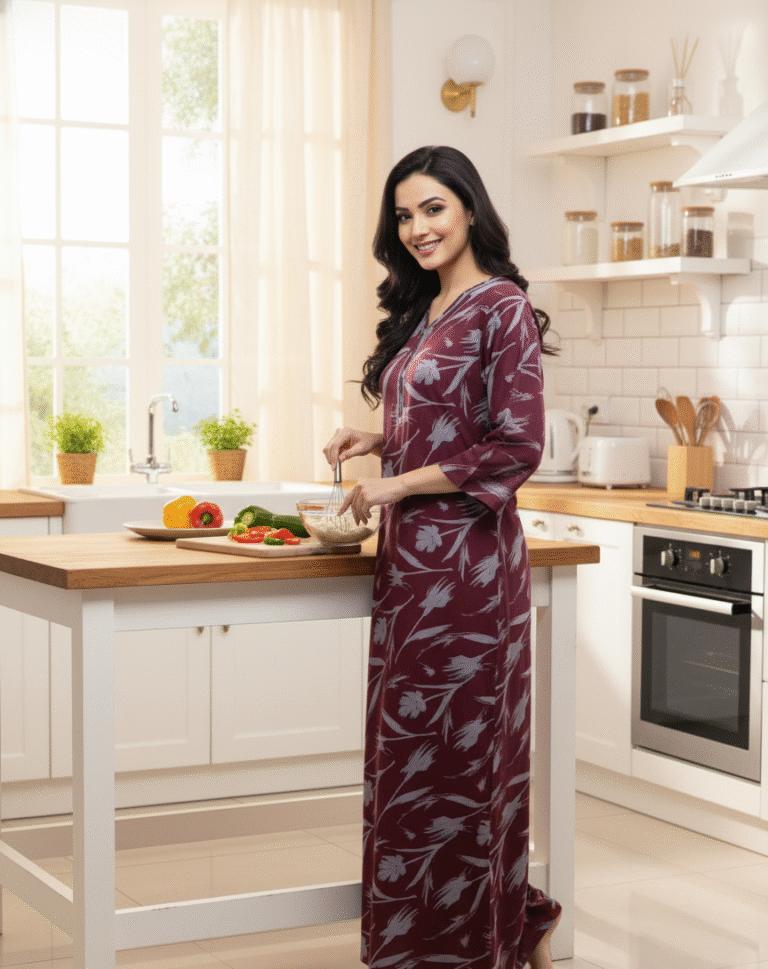 - Versatile Loungewear: This gown is perfect for a restful night’s sleep, a comfortable morning in the kitchen, or unwinding in the living room—it’s your go-to piece for comfortable home wear.