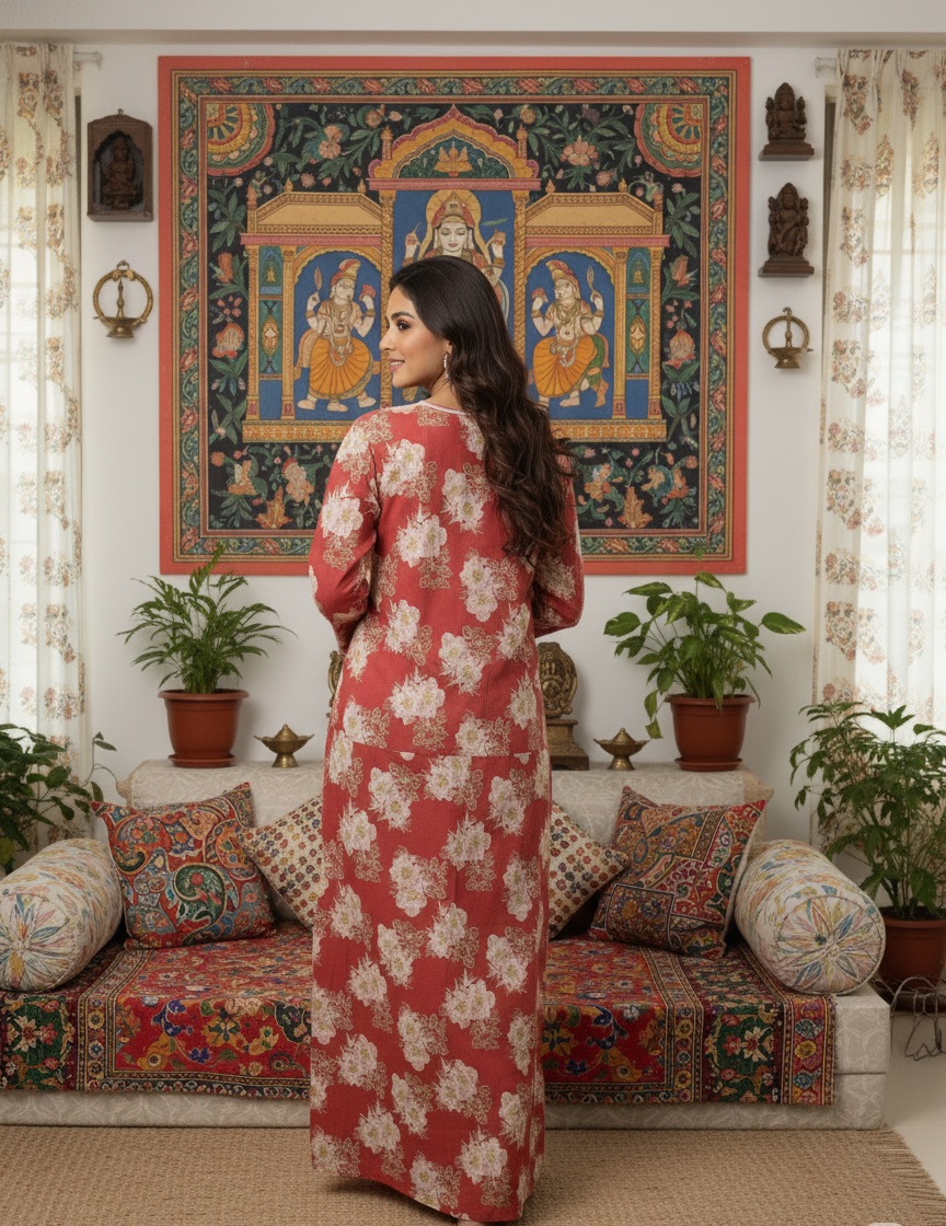 Indulge in the ultimate blend of comfort and elegance with our Premium Rayon Floral Print Kaftan Nighty. Crafted from the finest Rayon material, this nightgown is designed for the modern woman who values relaxation without compromising on style.